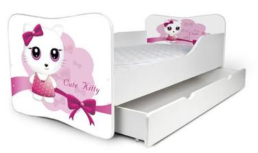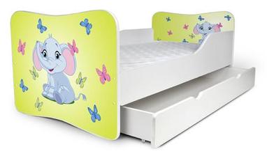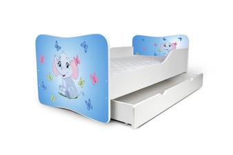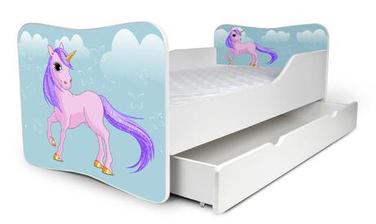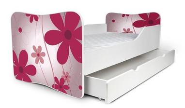 Krásna detská posteľ s úložným boxom s potlačou.
