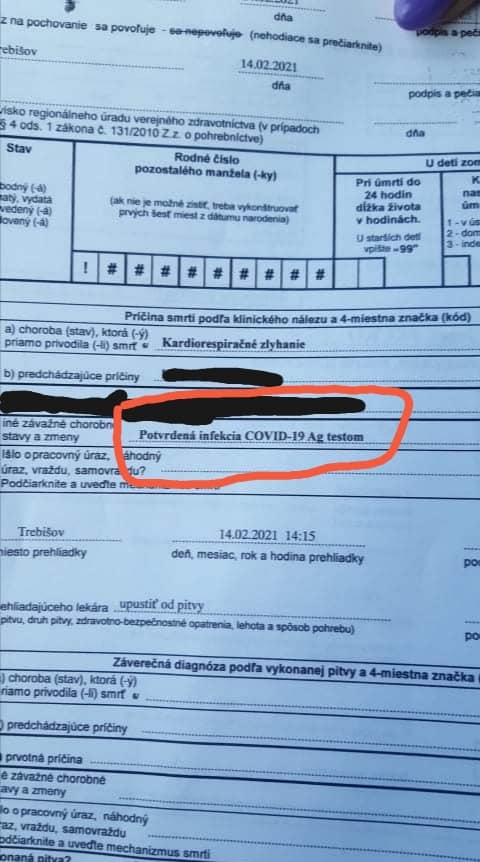 Chcem sa s Vami podeliť o zlú skúsenosť s našim zdravotníctvom.V sobotu polomŕtveho človeka odmietla RZP prevesť do nemocnice,že to nepotrebuje.Po opätovnom volaní s malou hádkou s nimi bol hospitalizovaný.V sanitke mu bol urobený Ag test s tým že je negat.Pri príjme v nemocnici bol zrazu pozitívny.Tým pádom mu urobili PCR test.V nedeľu lekárka oznámila že výsledky budú vo večerných hodinách.Medzitým o 12-ej zomrel.Tým pádom bol pre nich pozitívny čo uviedli aj v správe o úmrtí(viď foto).Večer poslali výsledky PCR testu, že je negatívny(viď foto).Na moju sťažnosť ako je to możné mi pani lekárka povedala,že ak je to problém mám sa zastaviť a tú správu prepíšu. Nám nešlo o správu,ale o to aby bol pochovaný dôstojne a nie v patologickom vaku ako covid pozitívnych pochovávajú. Nemocnica nečakala na výsledok PCR testu a oznámila to hneď pohebnej službe ktorá je v týchto prípadoch viazaná dodržiavať prísne opatrenia.Teraz som sa presvedčila o tom ako umelo navyšujú počet mŕtvych na covid.Nemám síl to ináč riešiť,a preto Vás prosím o ZDIELAJTE to!!!