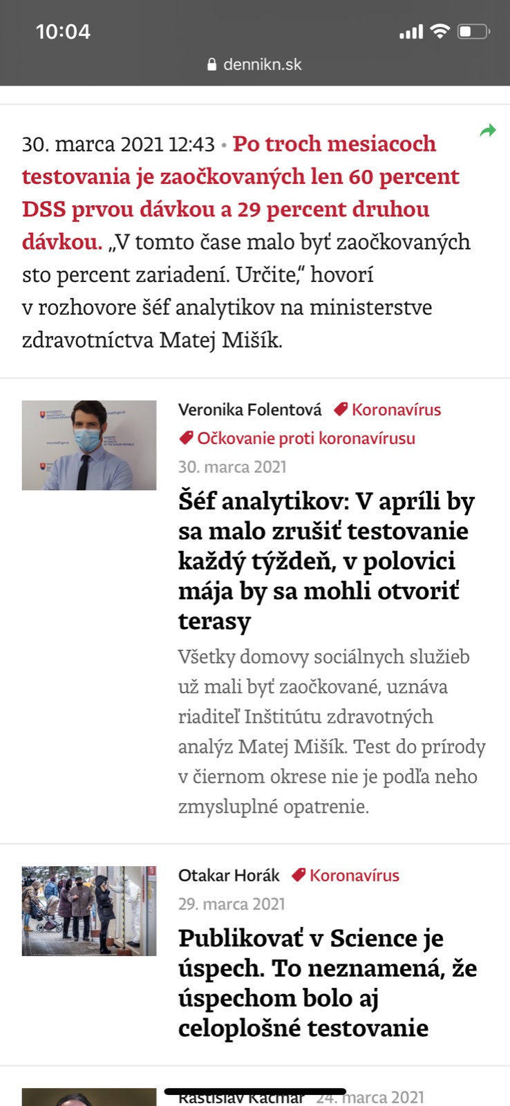 @kaja01 urcite je to tak a pritom dss boli riadne kosene. Ako ja si myslim, ze v dss su urcite aj ludia, u ktorych vakcinacia nieje velmi vhodna. To ako ten pan co u nas zomrel po ockovani pfizerom, lebo horucka dopomohla k jeho umrtiu. On by pravdepodobne zomrel, aj keby v svojom stave dostal obycajnu nadchu, nieto koronu. Ale zbytocne to tymto u neho cele urychlili a zhorsili reputaciu ockovania. Ale zasa na druhej strane odmietat v principe dat zaockovat rodica umiestneneho v dss je vcelku velky risk. Inak myslim si, ze cast starych ludi odmieta vakcinaciu aj napriek odporucaniu mladsich z rodiny, ale urcite to budu len male percenta z odmietacov. Ja som rada, ze mna sa moji stari rodicia (80+ a 70+) ani na nazor nepytali, hned ako sa dalo v ich vekovych kategoriach ockovat sa pokusali aj prihlasit.