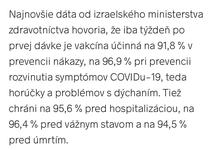 Nezávislý výskum britských vedcov, ktorý v Izraeli prebieha od začiatku očkovania, zase dokázal, že už len jedna dávka tejto vakcíny vás po 21 dňoch od jej podania na 90 percent ochráni pred covidom-19.