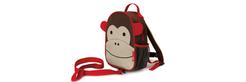 Krásny batôžtek Skip Hop s motívom opičky s bezpečnostným pásikom. Pásik je možné podľa potreby odopnúť. Batôžtek má polstrované nastaviteľné ramenné popruhy, ucho na prenášanie, hlavné vrecko na zips, sieťované bočné vrecko na fľašku a menovku, aby sa batôžtek nestratil.