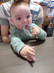 Pochádzam z ôsmich detí, čiže o nejakom orzmaznávaní nemôže byť ani reč. Ja som matkou šiestich detí a považujem sa za tzv. "starú školu." Teda, čo sa názoro na výchovu týka. A hoci vychytávok a pomôcok k vývinu a vývoju dieťaťa je veľa, kvalitné výrobky stoja pekný peniaz, tak som sa kúpe hryzadielok vytrvalo bránila. Až raz prišla môžnosť zapojiť sa do súťaže o testovanie produktov Curaprox baby. Spočiatku boli moje očakávania skeptické. Veď predsa na trhu je toľko rôznych výrobkov, tak prečo práve Curaprox? Ale po otestovaní Hryzadielka Curaprox baby som zmenila názor. Nie je to len hračka, či hrkálka a hryzadielko v jednom. Je to pomôcka, ktorá rastie nielen so zúbkami dieťaťa, ale aj s celou jeho osobnosťou. Ako prvé dieťatkouchopí hrýzatko a to sa mu z drobnej rúčky len tak nevyšmykne vďaka rôzne tvarovanému povrchu a stimuluje ho držať ju čo najdlhšie. Potom si všíma farebné guľôčky a tým stimuluje zrak. Hkálka podnecuje jeho zvedavosť, keď pohne hryzadielkom. A nakoniec prichádza ochutnávanie, kedže drobci v tomto období všetko testujú ústočkami .) Kefka na hryzadielku pomáha zmierniť nepríjemné pocity spojené s prerezávaním prvých zúbkov. Keby som to nezažila, tak tomu neuverím :) Hryzadielko sa stalo favoritom medzi hračkami :)