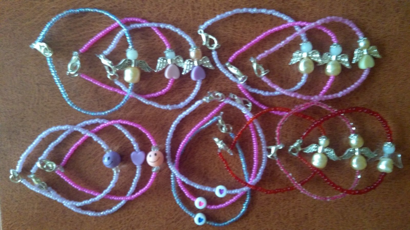 Jemné náramky smejko a srdiečko farebné 1,20, 👼 náramok 1,80.