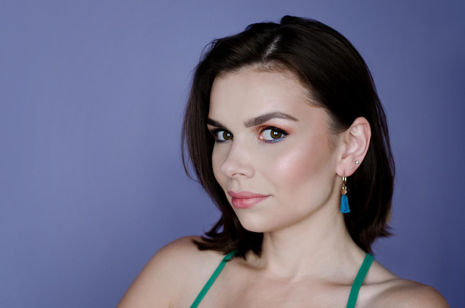 S týmito novinkami som vytvorila rozžiarený, farebný look. Použila som paletku Born Awesome - teplými odtieňmi som vytieňovala horné viečko a spodok oka som zvýraznila metalickým zeleným odtieňom. Vnútorný kútik som prejasnila matným najsvetlejším tieňom a urobila klasickú čiernu linku pomocou fixy Catrice Calligraph. Broskyňový matný tieň som použila na líčka a zvolila som tmavý broskyňový rozjasňovač z palety Go for the Glow 02 the warms. Na pery som naniesla tekutý metalický rúž Catrice Liquid Lip Powder Metal Matt 010.