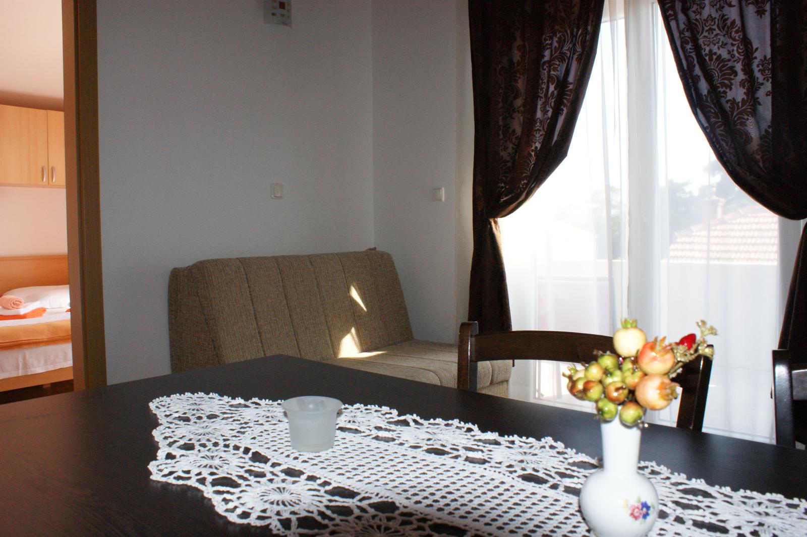 rozťahovací gauč v pozadí