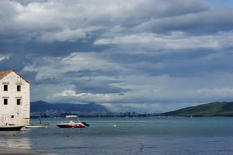 Piesočnaté dno na pláži Petrova Njiva v kaštel Štafilići