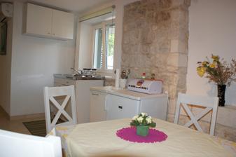 @marcelilina pre 4 osoby je cena 96 Eur za noc. Na pláž treba ísť autom, ale to z centra Trogiru je pomerne zdlhave. Asi 70m od domu odchádza lodná doprava na pláž v Okrug Gornji (hlavná pláž Copacabana) alebo trajekt na ostrovček Drvenik kde sú krásne oblázkové a piesočnaté pláže - raj na zemi 🙂