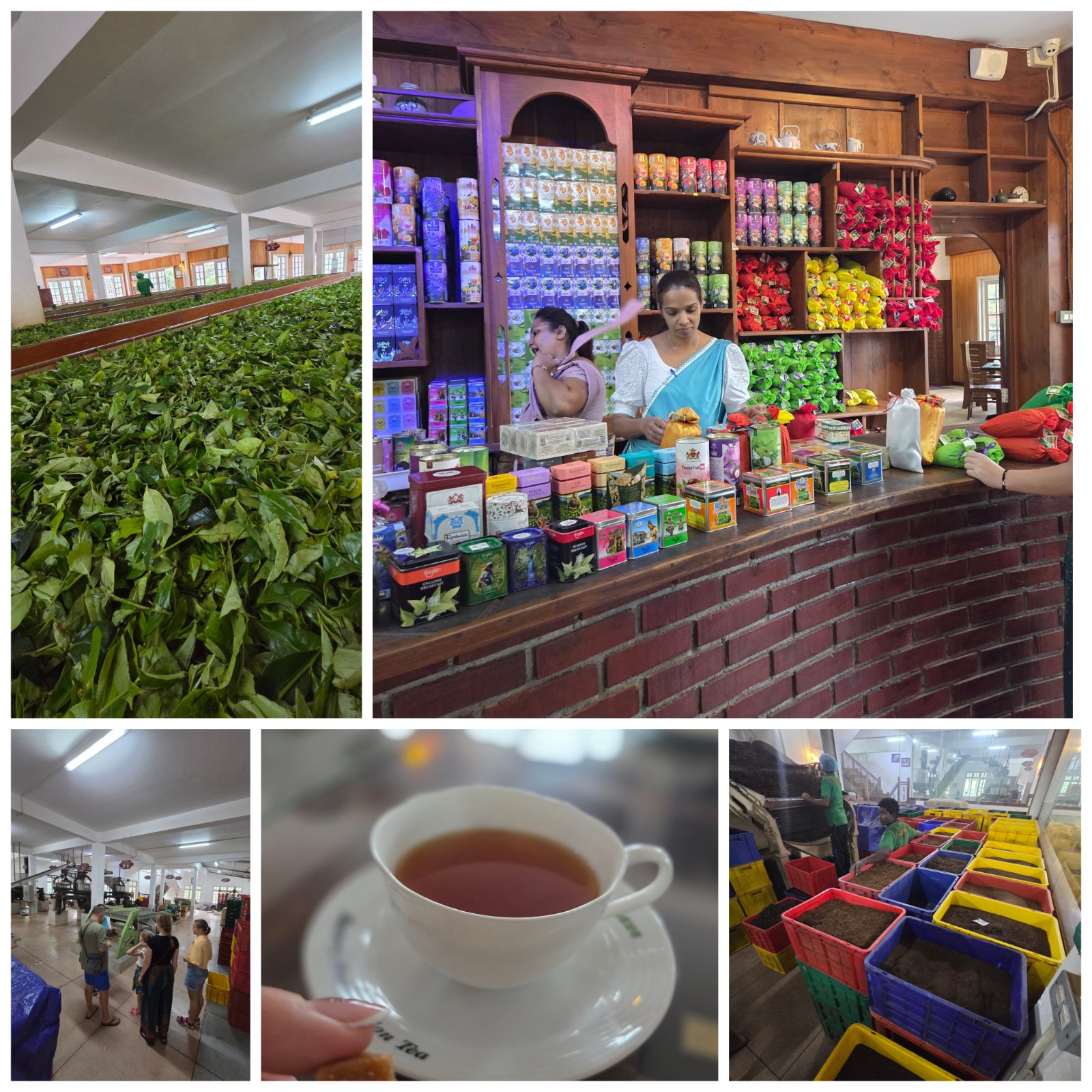 a zastavili sa po čaj vo fabrike. Povodný plán boli čajovníkové plantáže v Nuwara Elyia, no pre rozsiahle následky cyklónu a výstrahy 3.stupňa pred ďalšími zosuvmi sme museli zmeniť z bezpečnostných dôvodov trasu a horské oblasti úplne obchádzame. Prehliadka novej fabriky však bola super.Vzali nás priamo do výroby.