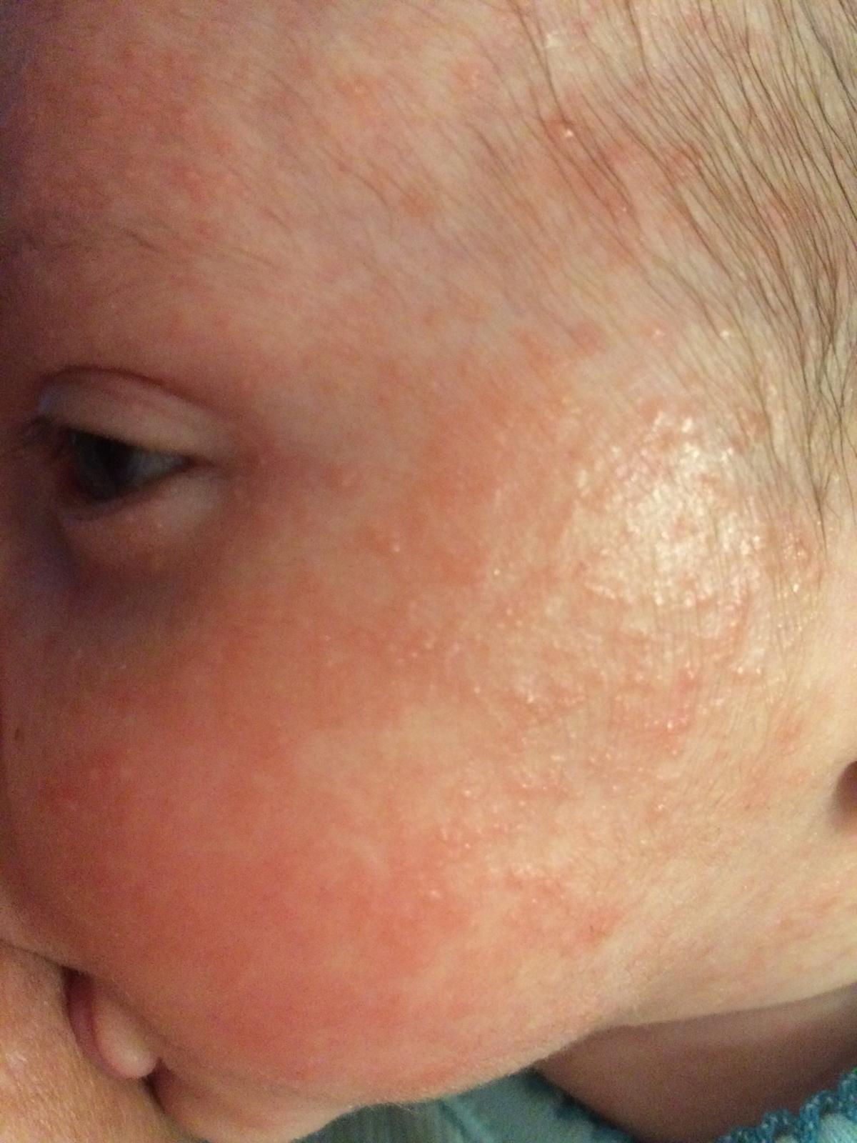 Baby z čoho to môže mat, takéto to má, keď sa zlosti, inak to má bledé, suché na dotyk. Boli sme dneska v poradni, lekárka mu dala espumisan