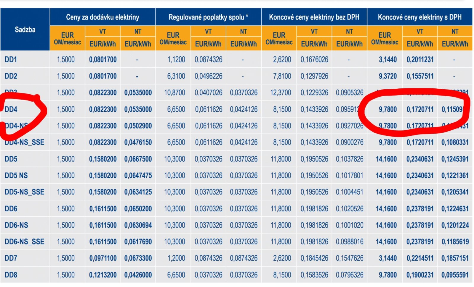 Ty chces vediet zrejme cenu za odberne miesto, to platis podla programu ktory si si vybrala pri uzatvarani zmluvy s SSE. Program sa oznacuje velkymi pismenami DD. Napr. DD1, DD2. Najdes to v cenniku SSE. Mas to v zmluve.