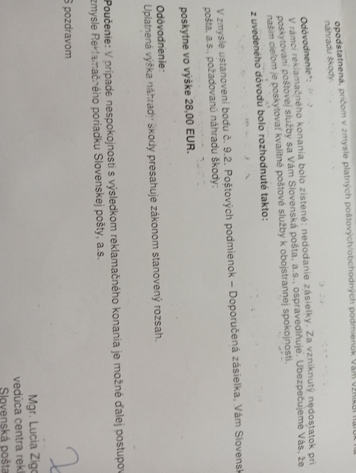 Posielala som cez slovenskú poštu doporučene 2.triedou balík. Vracala som v ňom nohavice do športového obchodu. Balík sa však stratil. Stále vypisuje, že z danej pošty bol odvezený, ale ďalej žiaden pohyb. Spísala som na pošte reklamáciu, uviedla sumu 50€, plus pani dopísala ešte 3€ ako poštovné. Po 2 týždňoch mi prišlo vyjadrenie, že reklamáciu uznali a posielajú mi 28€. Sú nejaké tabuľky podľa čoho pošta toto ráta? Mienim napísať odvolanie. Ďakujem pekne
