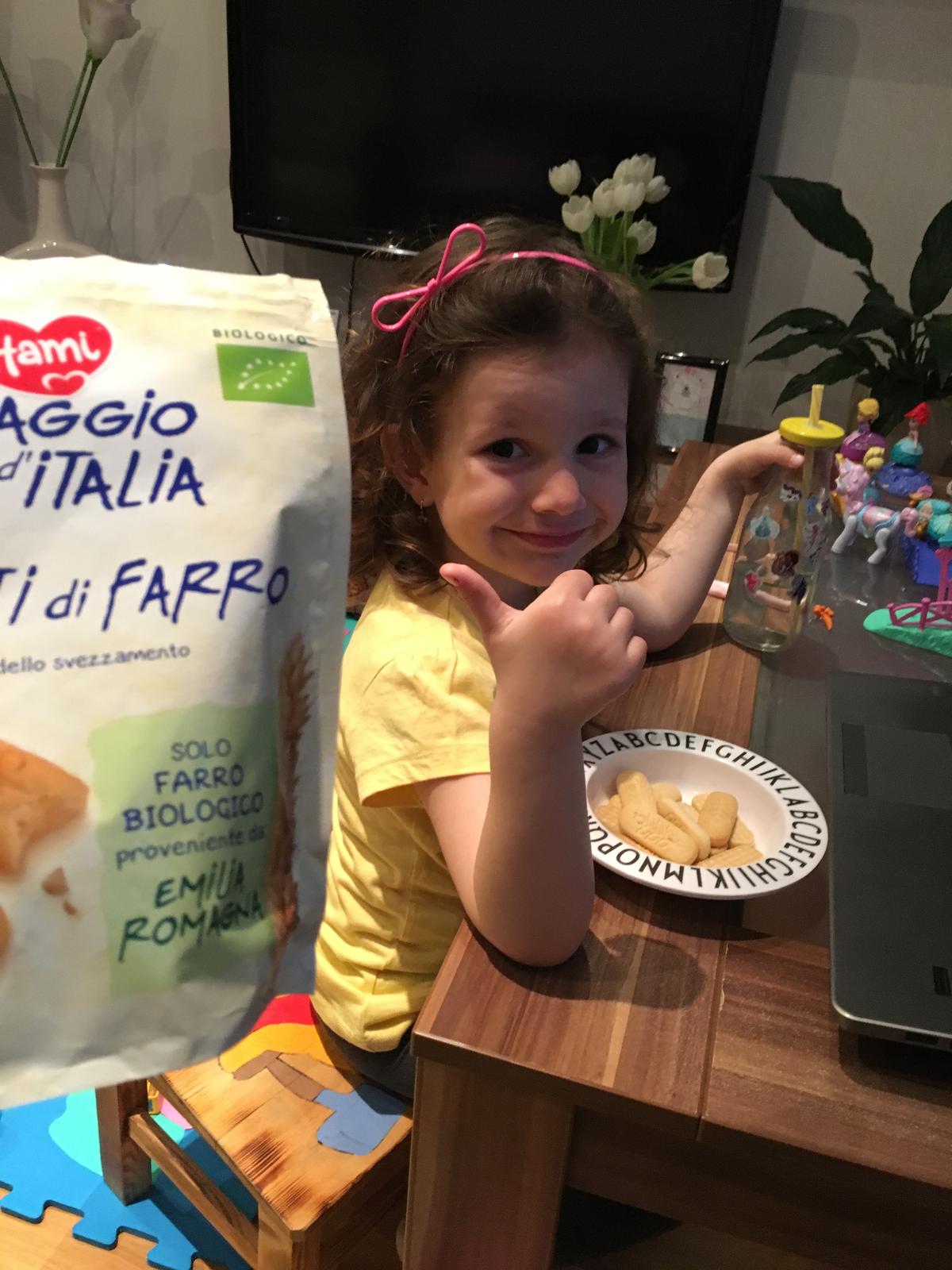 Ako posledné sme si uvarili Hami Bio detské cestoviny z tvrdej pšenice, regionálny výrobok z oblastí Talianska Apúlia a Toskánsko. Určené sú pre dojčatá a malé deti od ukončeného 6. mesiaca života. Jedno balenie je v tvare písmen abecedy a druhé v tvare kačičiek. My sme načali obe balenia naraz. Deti cestoviny milujú. My sme si písmenká uvarili podľa návodu a za sľubených 6-7 minút už plávali v nedeľnom vývare. Kačičky sme si urobili s boloňskou omáčkou a tvárili sme sa, že sme na fajnovom obedíku v Taliansku.