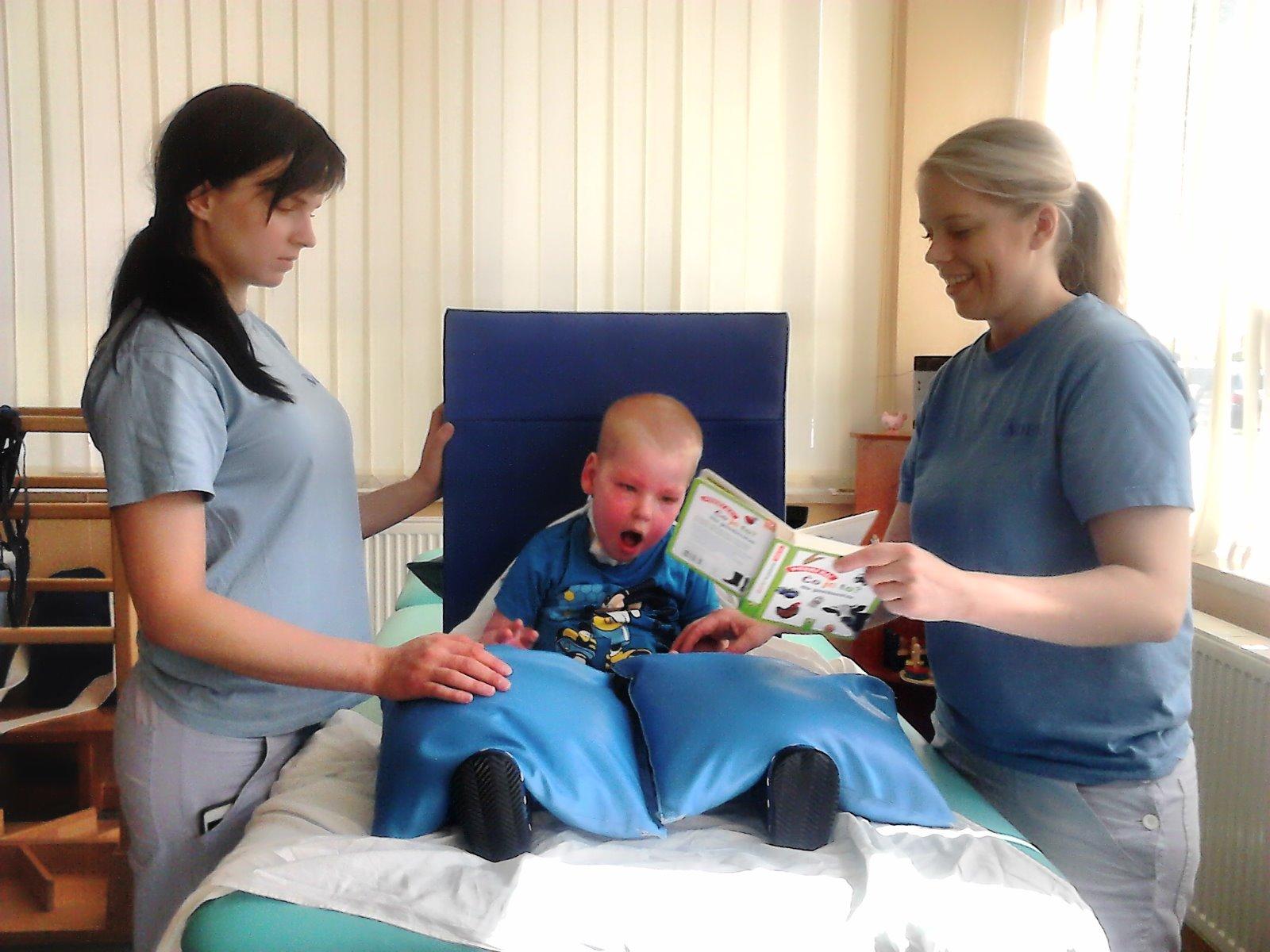 Nácvik sedenia. A červený som, lebo som plakal. Nemám rád cvičenie na lakte!
