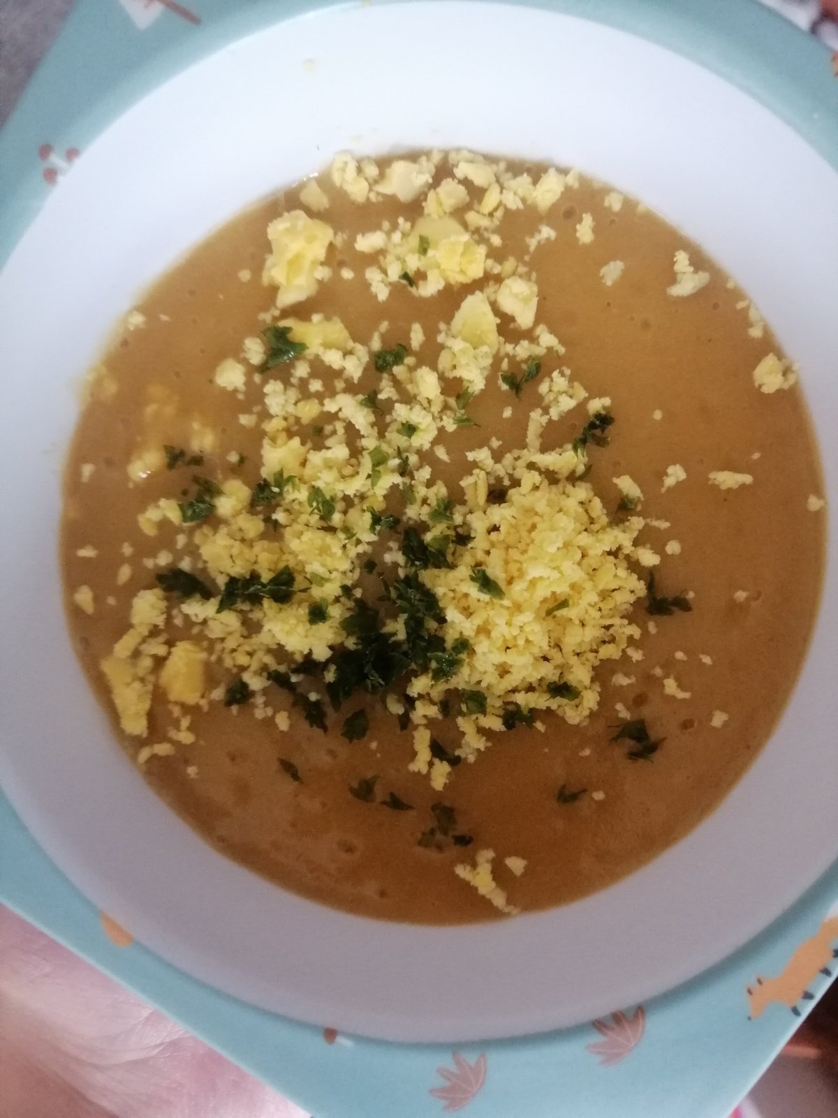 Zeleninová polievka s vaječným žĺtko. Stajling mi nevyšiel lebo sa mi žĺtok rozmrvil v ruke 😄 mrkvu, zemiak petržlen a brokolicu som ošúpala a uvarila do mäkka. Krátko pred dovarením som pridala trochu bezvaječných cestovín (niťoviek) mixla navrch