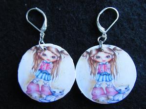 naušnice na ľahkom drevenom podklade,motív je na oboch stranách na kvalitnom fotopapieri lakované matným lakom. francúzske zapínanie postriebrené bez obsahu niklu