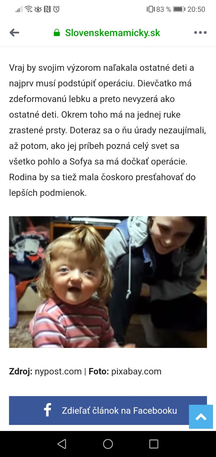 @anieli_1 písali kvôli výzoru, lebo to tak "citlivo" znie. Neverím, ze vzhľadom na deformitu lebky tam nie je iný neurologický problém. Minimálne neurologicky deficit. Netreba hrať v sociálnych sieťach všetkým na city . Žijeme vo svete kde sú zdravotné, sociálne, vzhladové, spoločenské rozdiely. Nie sme si rovní, netreba predstierať že ano. Nie je rozdiel ako rozdiel.