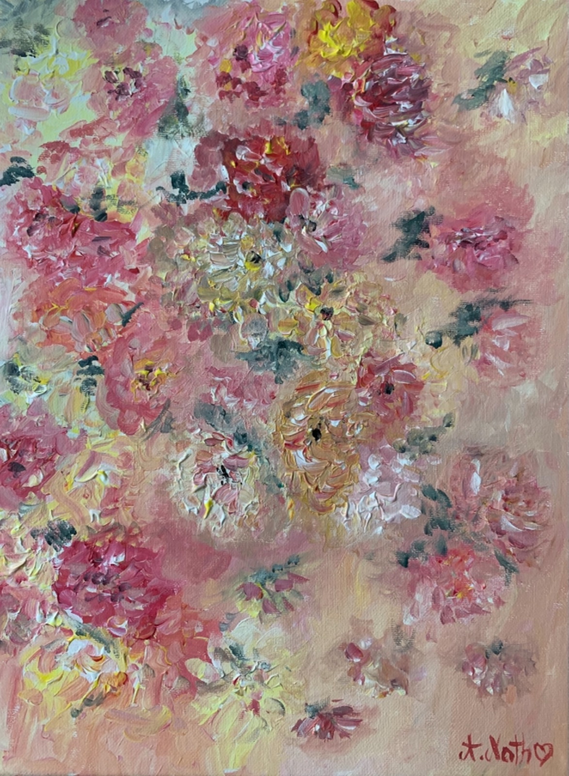 Velmi sa mi paci Vasa tvorba, napadita, prepracovana, zaujimava. Vzdy sa vsak ale pristihnem, ze ma trosku vo vnimani obrazu vyrusi Vas podpis so srdieckom. Samozrejme, je to "Vasa stopa", len by ma zaujimalo, ako to vnimate vy. K tak nadhernemu prepracovaniu malby dat taky podpis. Dakujem za nazor ❤