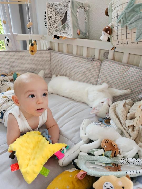 Bruno pred rokom a Bruno dnes🥰 Pamätám si ako dnes na ten stiahnutý žalúdok, či tam to babatko skutocne je, ci tie dve čiarky nesklamali. A videli sme nádherné bijuce srdiecko🥰Dnes je to 5 mesačný chlapcek, co sa otáča na všetky smery, guľa cez pol obývačky, začína plazit a vykrikuje celý den😅
