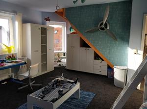 @anjelicek26 Velmi pekne... ja by som este (ak je to mozne) natrela alebo prekryla tie schody - ta farba dreva mi do toho celeho dizajnu izby nepasuje ;)