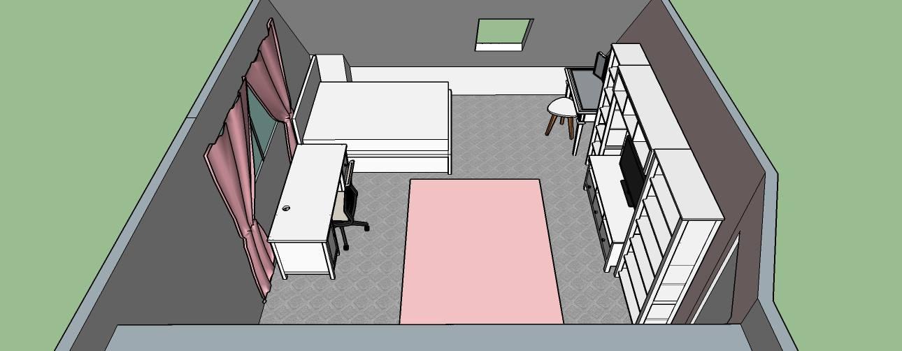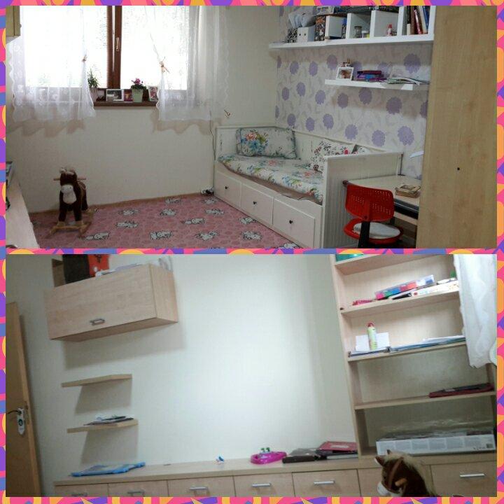 My sme dali nasej 8rocnej Ikea roztahovaciu postel stolik na pisanie, mam objednany presne toaletny stolik a nabytok ma predne na styl obyvacej izby, vstavanu satnikovu skrinu. Na zemi este detsky ruzovy koberec. Velka satnikova skrina a na stenach police. Na knihy a hracky