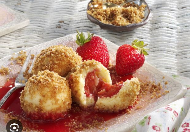 a dovnútra jahody cerstvé obalené v cukre......