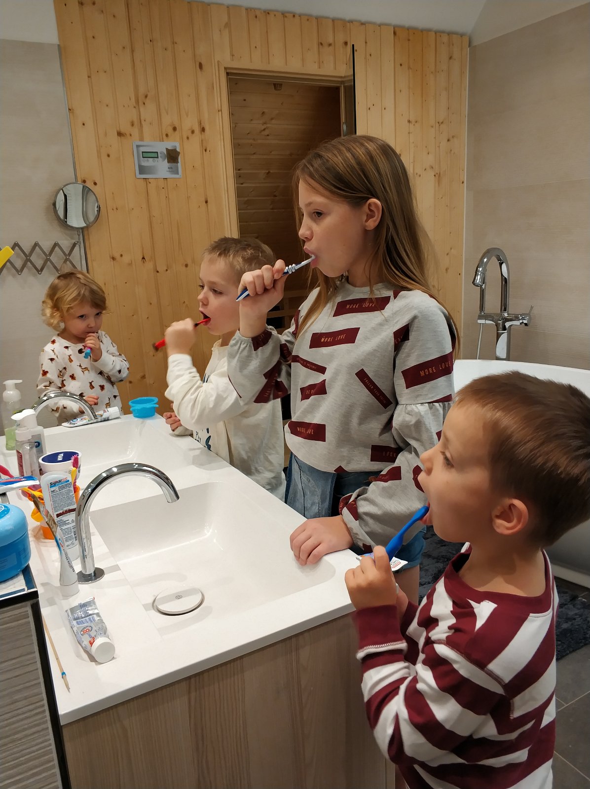 Pozeram ,ze najstarsia ma kefku ako jedina v pravej ruke,ostatne deti su lavaci?
