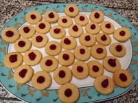 @simeab jagerske gombíky sa vraj volajú 👍 maslová sušienka, v strede ríbezľový džem a orechový sneh a orech hore.