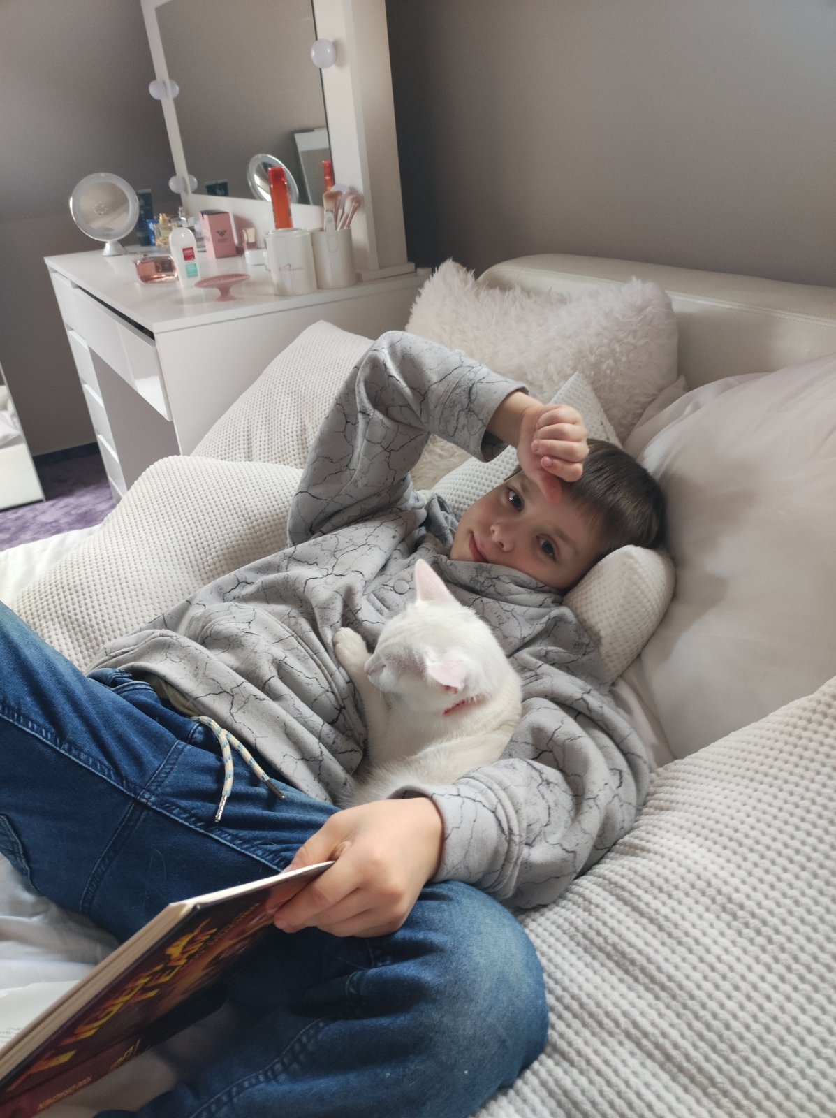 Macka,knizka,mamina postel, vraj dokonala kombi🫣🤣