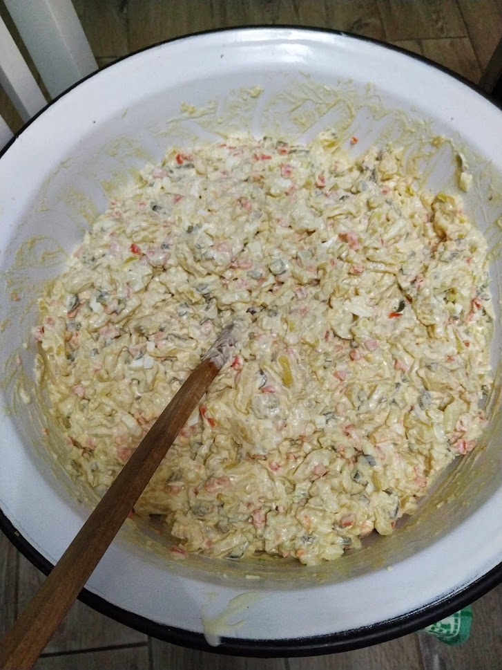 @13mamicka jasne. my robime nasledovne (pomer ti neviem napisat, lebo robime vzdy ine mnozstvo, ale to urcite odhadnes) - zemiaky, trosilinku cibulky, velmi najemno nakrajanej, vajicka, kysle uhorky a uvarena mrkva, tie dve su cca v rovnakom mnozstve. Davame vrstvene pretlacene zemiaky, osolime, dame vajicka, mrkva, uhorky, cibulka... atakto vrstvime, az kym sa nam vsetko neminie - lahsie sa to potom miesa. Nakoniec zalejeme- jedna davka vyzera asi nasledovne - v tomto pripade sme davali asi 4 davky, ak nie viac, nepocitala som: