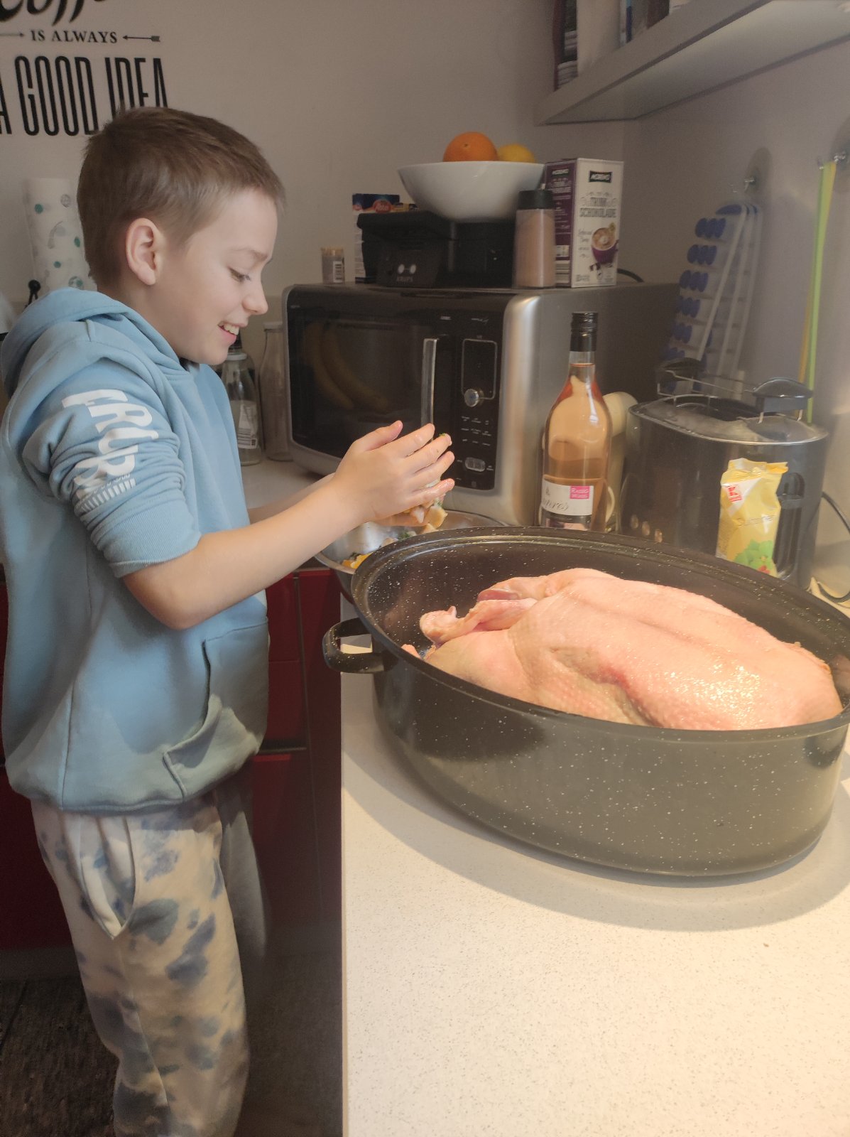 @martul robime hus... nejako sme sa neskoro spamatali a kacky vyzerali jak male babatka vychudnute, tak nebolo inej cesty 😂 Vcera sme robili lokse, kapustu som kupila a polievku rybaciu tiez vcera, tak uz taka oddychovka s koledami dnes...