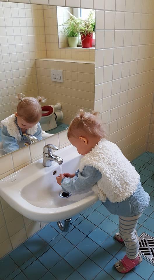 Najoblubenejsia cinnost v jaslickach...spliechat vodu 😂 Umyvadlo v takejto vyske musime nejako zorganizovat aj doma, lepsi darcek na narodeniny by asi ani dostat nemohla 😂