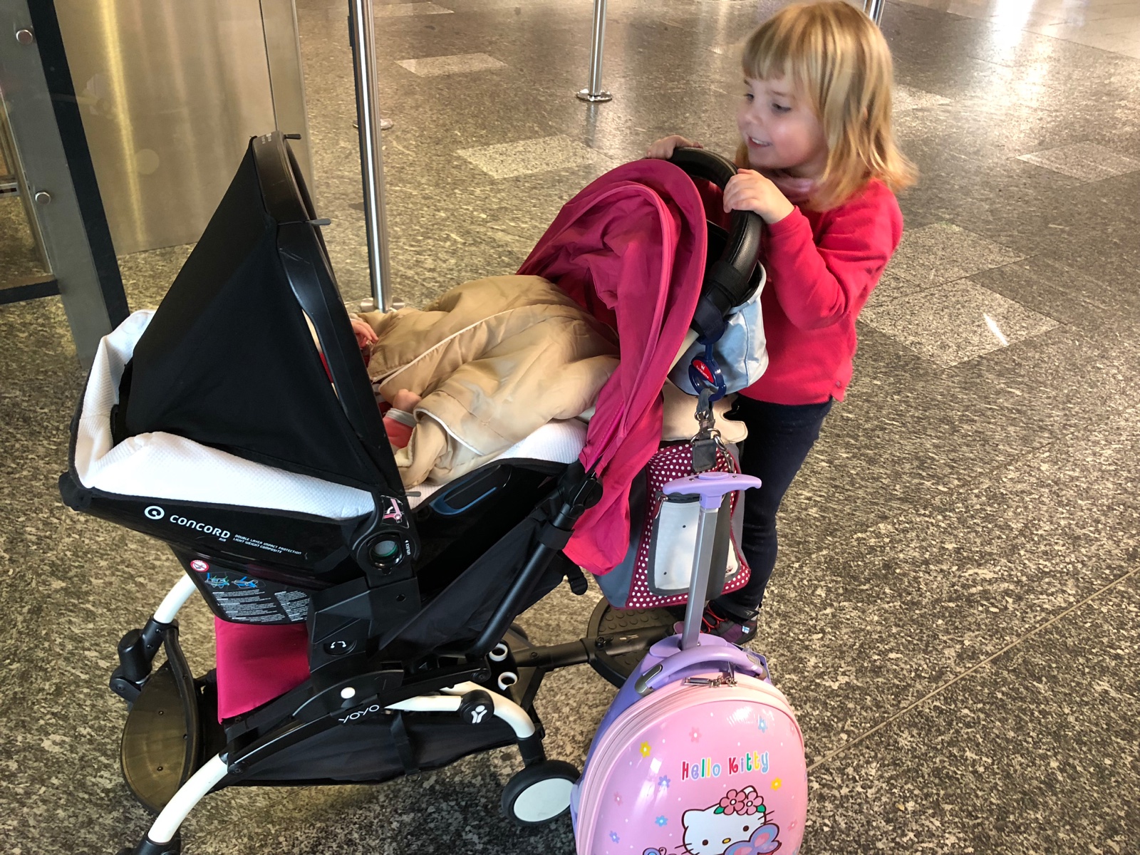 Baby, nic si nerobte zo sprostysch reci. Ten kto tak vela necestuje ako my, ten nepochopi. Ked musi clovek prestupovat na velkom letisku a presunut sa z A do B, co su casto kilometre po letisku, dieta unavene, okolo delsie 3-4 deti, ktore tize unavene, ten to nikdy nepochopi. Nasi boli v dvoch rococò vesti von z kocika. Copana ma tiez 4 a mame prave na taketo "ekš2, ktorych je strasne vela, Yoyo. A hlavne, ked cestujem sama, sice len s dvomi detmi, ale da to zabrat. Po 6 hodinovom nocnom lete rano este prestup,l dalsi hodinovy let a este dalsikh 30 km domov autom. To je aj na kona vela. ked je copana unavene, ide baby do nosica a copana do kocika. A co. V Abu Dhabi su na letisku aj letiskove buggy. Kazdy si tam mode dieta posati a verte, obcas tam sedia faaaakt ze velkeeee deti: A nik sa na tom nepozastavuje.