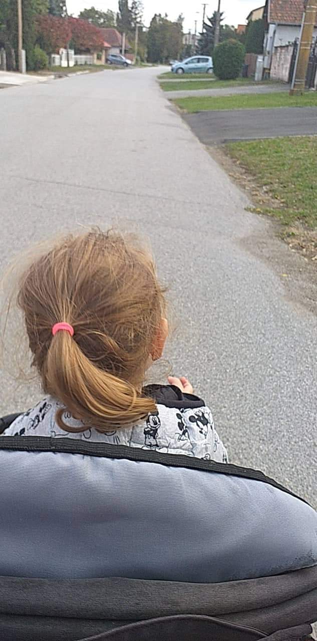 No a pre pohorsenie dam foto mojej 5 rocnej kocky.Maly nechcel sediet v kociku a dcerka uz nevladala tolko chodit,tak sa vymenili😂😂😂