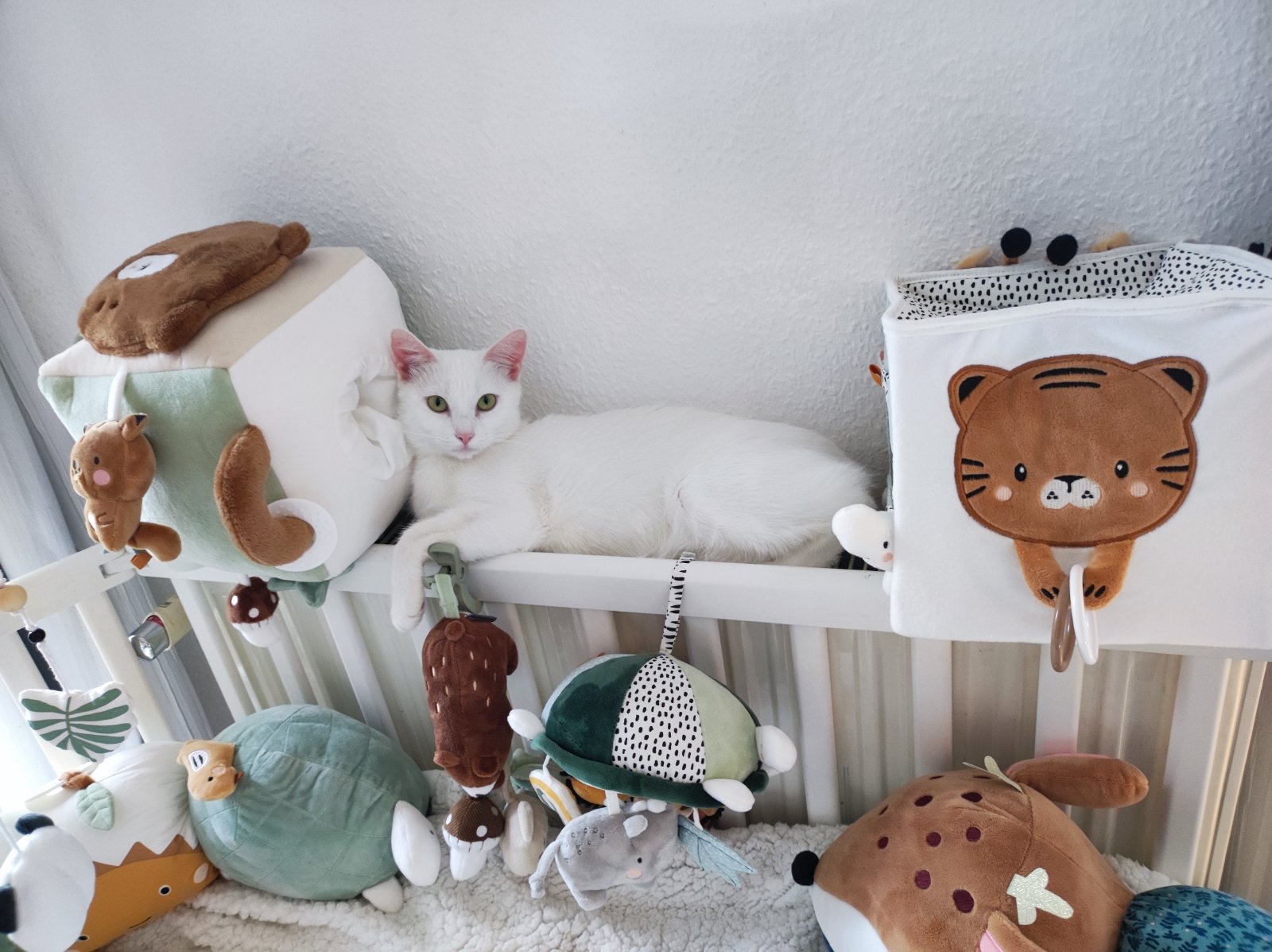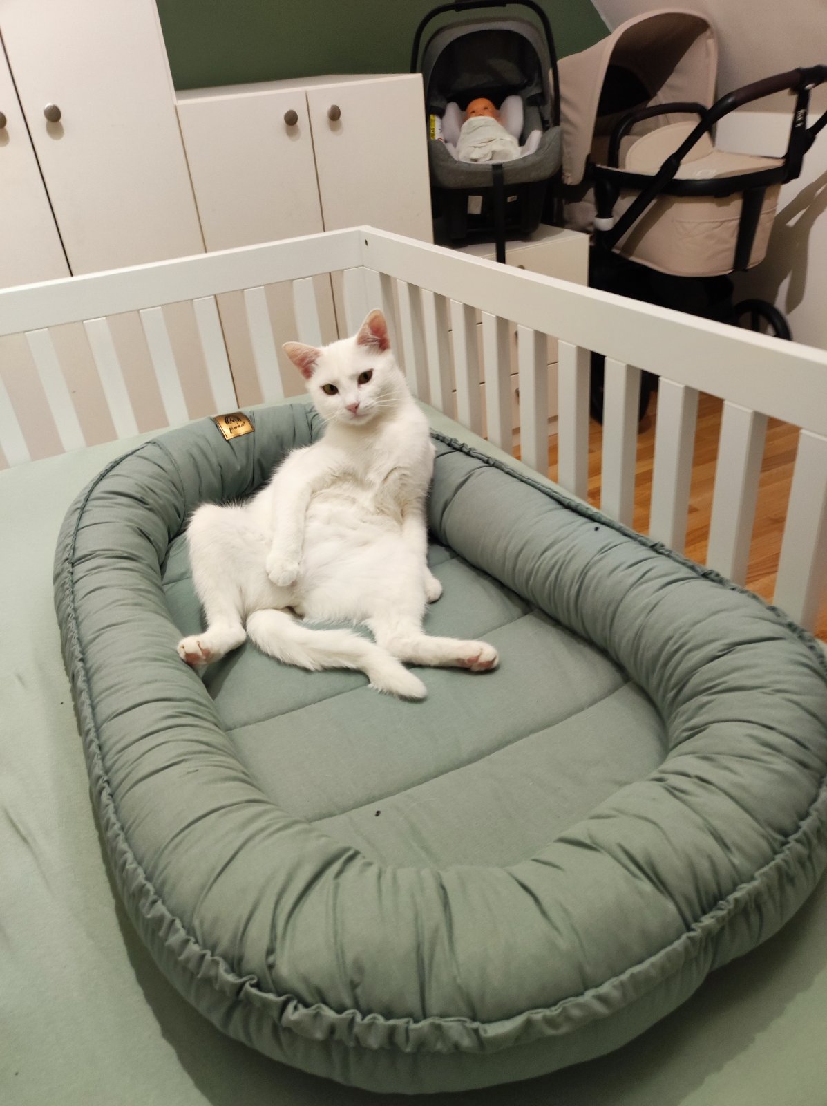 Náš kocúr tiež ležal v postieľke (hniezde) a keď sme prišli z pôrodnice pozeral, že aké čudo sme tam dali miesto neho😀😀 mačka si z hniezda a z postieľky spravila wc, takže som mala robotu navyše😀