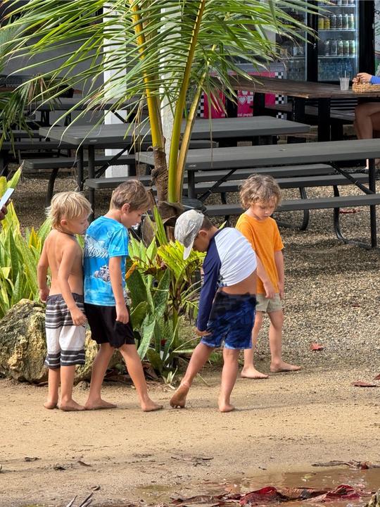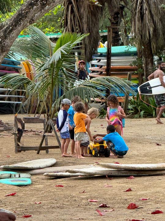 Oli je vo vode na surfe a Max zmizne s partiou detí niekde po pláži. Bežia, lezú po stromoch, skáču cez mláky a vymýšľajú somariny.