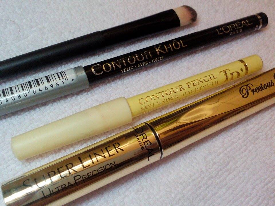 čierna kajalová ceruzka, obyčajná ceruzka na obočie + liner loreal