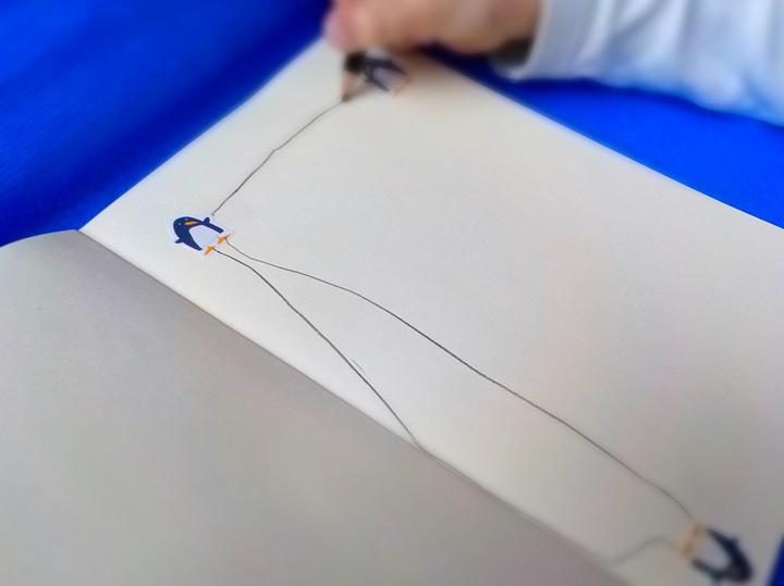 Princíp je taký, že si vyberieme samolepku a vymyslíme si k nej jednoduché zadanie. Dieťa má buď doplniť nejakú scénu alebo podľa nálepky zopakovať nejaký grafický prvok.