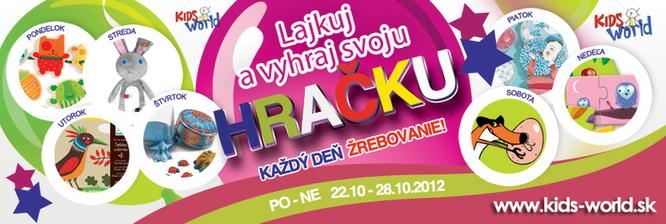 Priatelia, fans! Na Facebook https://www.facebook.com/#!/Kidsworld.Detsky.svet mame súťaže o krásne hračky pre vaše ratolesti! Každý deň nová hračka, nová súťaž. Tešíme sa na Vás!