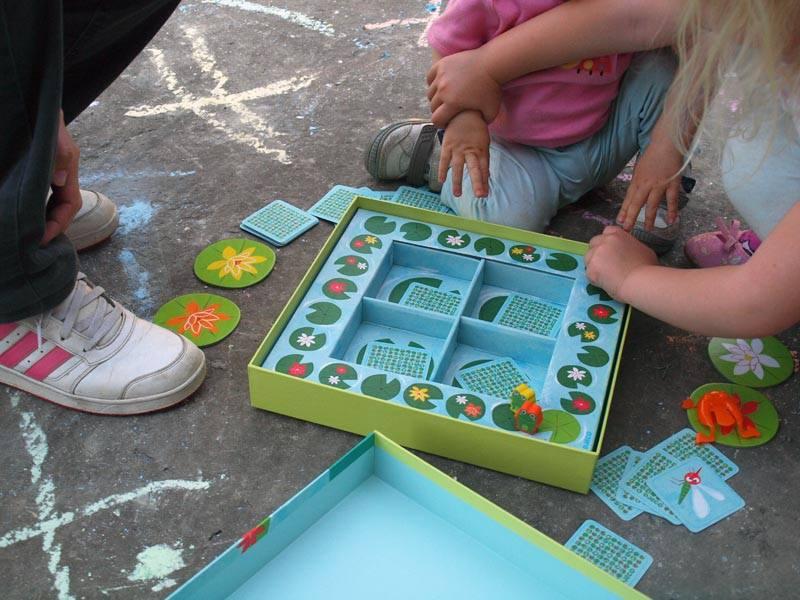 Spoločenská hra Croassimo. Ako asi vyzerá vo vnútri? Sú tam žaby, ryby, komáre... Jazierko, rybník... Bude sa robiť niečo s vodou?