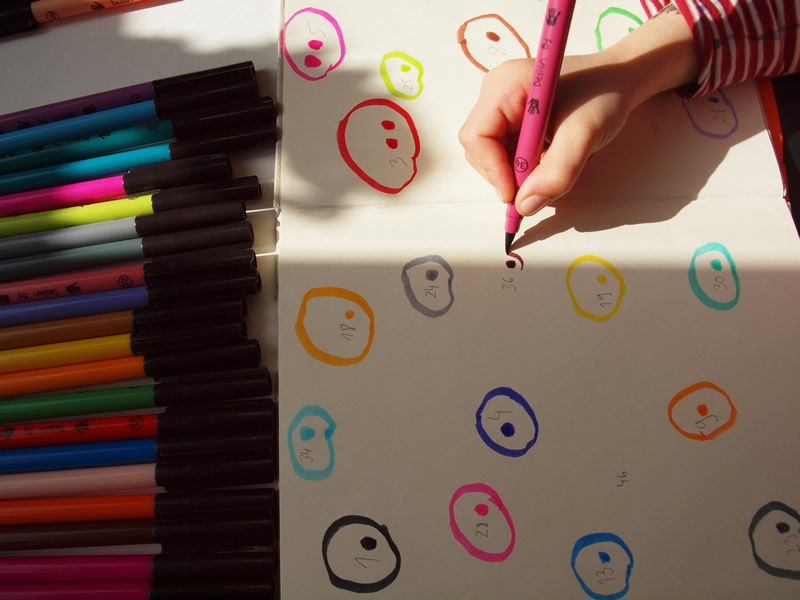 Čísla na fixkách prepíšete do zošita – rôzne porozhadzované.