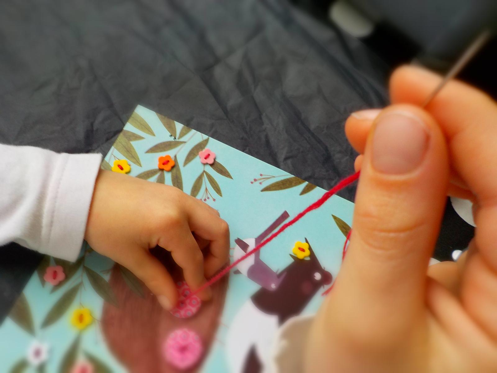 Najmä drobcom s ich malými rukami môže ísť prišívanie menších gombíkov ťažko. Keď vidíte, že im to nejde, môžete im obrázok prichystať a prišiť menšie gombíky a/alebo tie, ktoré sú uprostred obrázku. S väčšími gombíkmi a s tými, ktoré sú bližšie ku kraju si už poradia, pretože ich dokážu lepšie pridržať. Sada obsahuje presný počet gombíkov a ak sa jeden stratí, musíte ho nahradiť celkom iným.