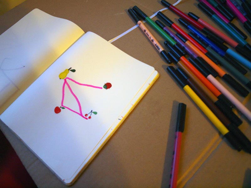 Lienka ochutná najskôr hrušku, potom jablko, potom čerešne a vráti sa k hruške.