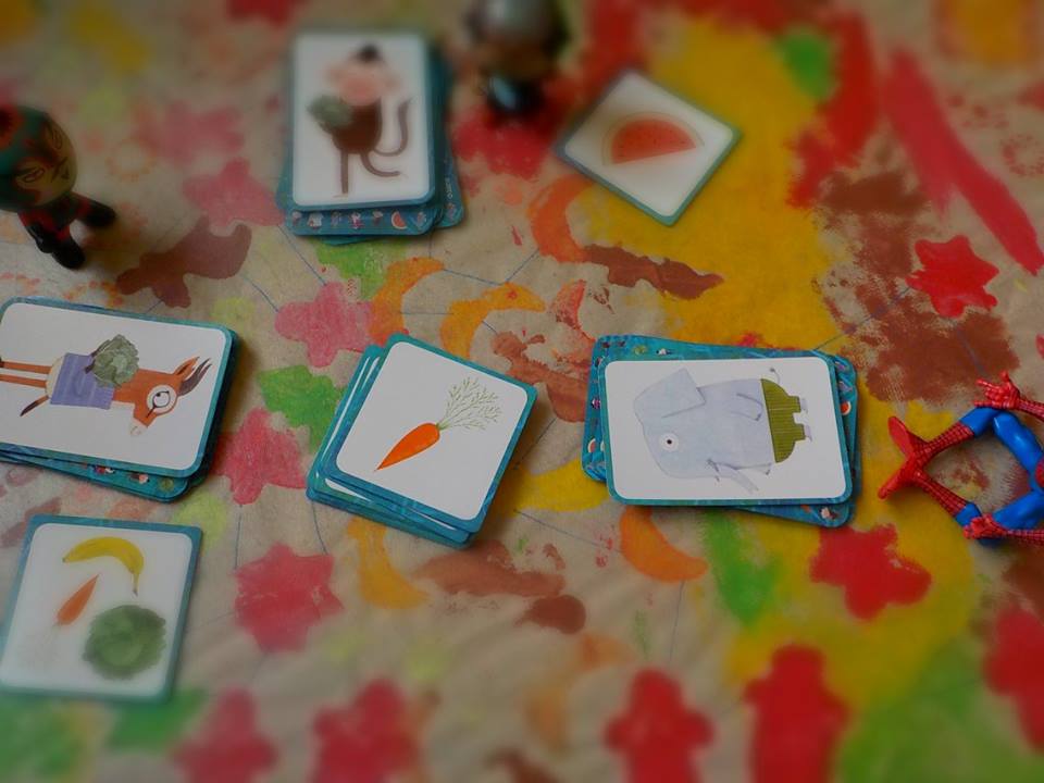 Všetky karty so zvieratami sa rozdajú medzi hráčov, otočené lícom nadol. Pri 3 hráčoch treba dať 2 karty bokom. Kartičky s ovocím a zeleninou patria doprostred - tak aby na ne každý hráč dobre dočiahol - otočené lícom nahor.