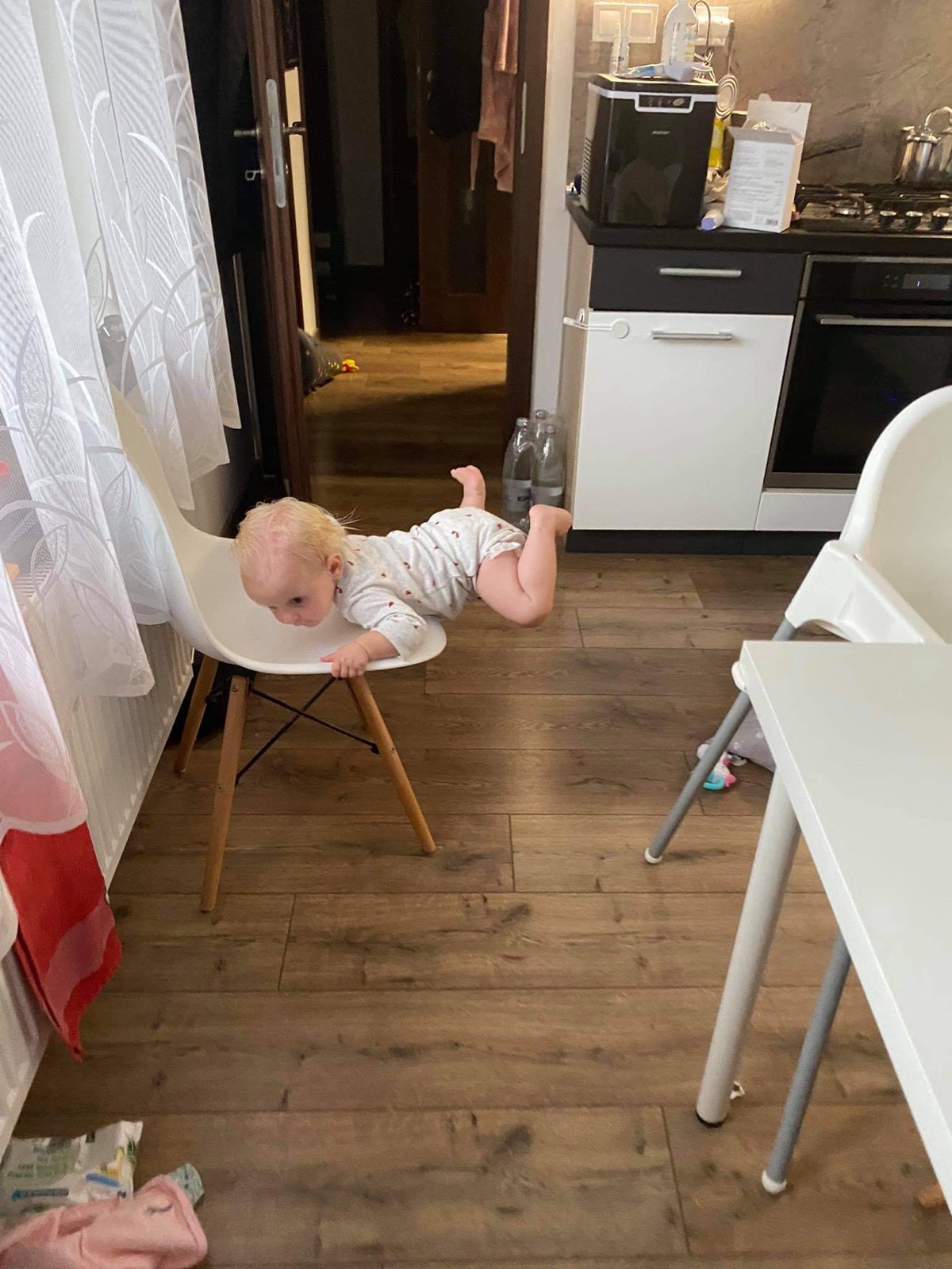 Ja ešte k tejto téme - mne dávno kamoška hovorila o svojom drobcovi, že dokáže vyliezť na horné skrinky kuch. linky. Neverila som jej dovtedy, kým som doma nemala svoje žihadlo. Ale musela som dávať sakra pozor, aby sa mu to dakedy nepodarilo až na sám vrch (ako kamoškynmu), lebo to by sme ho už potom nemali šancu odučiť. 😱