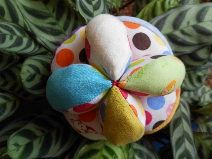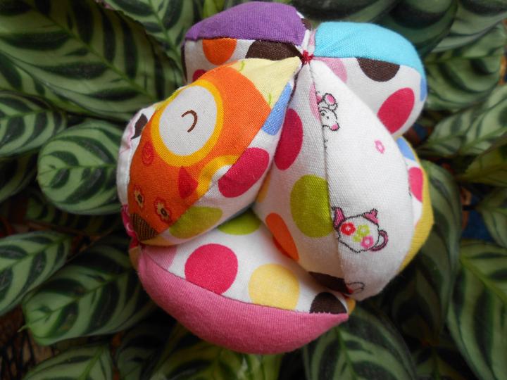 Montessori puzzle lopticka ... obvod je 35 cm --- sklada sa z 12dielov (po 3 strany) ktore spolu urobia krasnu lopticku. Ma v sebe sustiace casti, hrkalku, piskaciu cast.