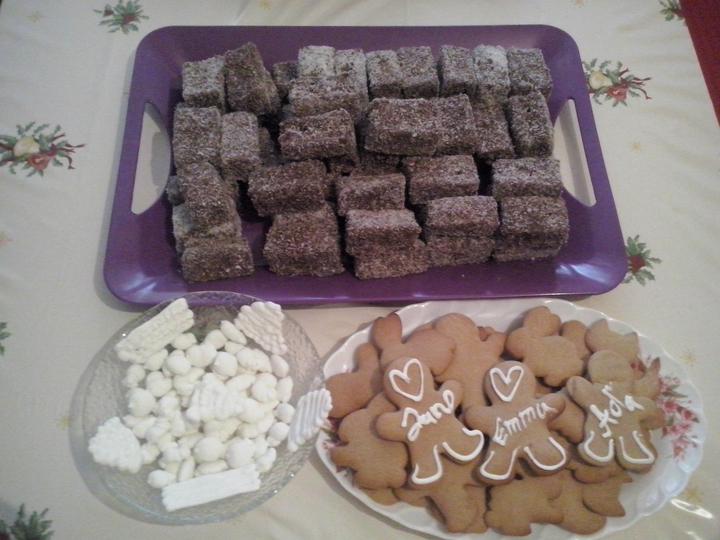 Mensia ukazka nasich kolacikov(este ich dnes namnozine),kokosove mi urobil manzelik sam,s medovnickami mi pomahal. Moje prvotinkove zdobene medovnicky su skryte,ale nedalo mi dat aspon nasich panacikov ozdobenych. ked uz o polnoci nebolo inspiracie s ozdobovanim tak zvysna poleva padla na snehove nepecene pusinky.