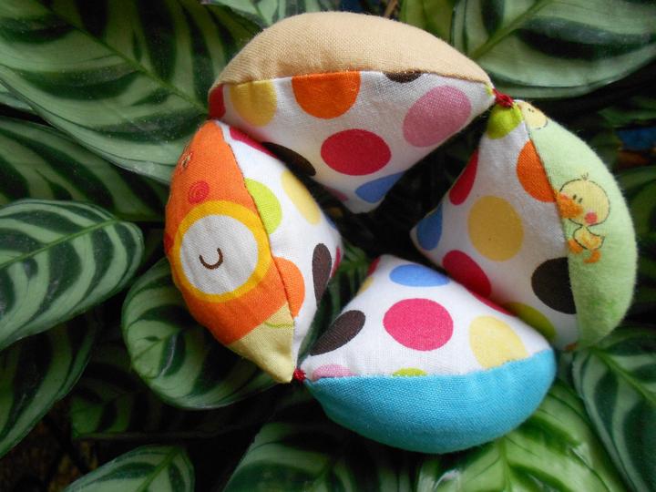 Je tvorena prevazne zo 100% bavlny rozneho motivu, vonkajsie obvodove dielce 5ks - je bud 95%bavlna, 5%eslastan,pripadne mix - ostatne casti su 100%bavlna, cize necelych 14% povrchu je tvorene inymi latkami ako cistou bavlnou. Podporuje to u deti vedomosti o roznych povrchoch a roznych motivaciach chytat to. Navyse nie kazdy diel obsahuje nejaky vnem a teda dieta musi najst to co chce - ci hrkat,piskat,sustat. upozornujem, ze pri pohybe lopticka hrka 🙂.