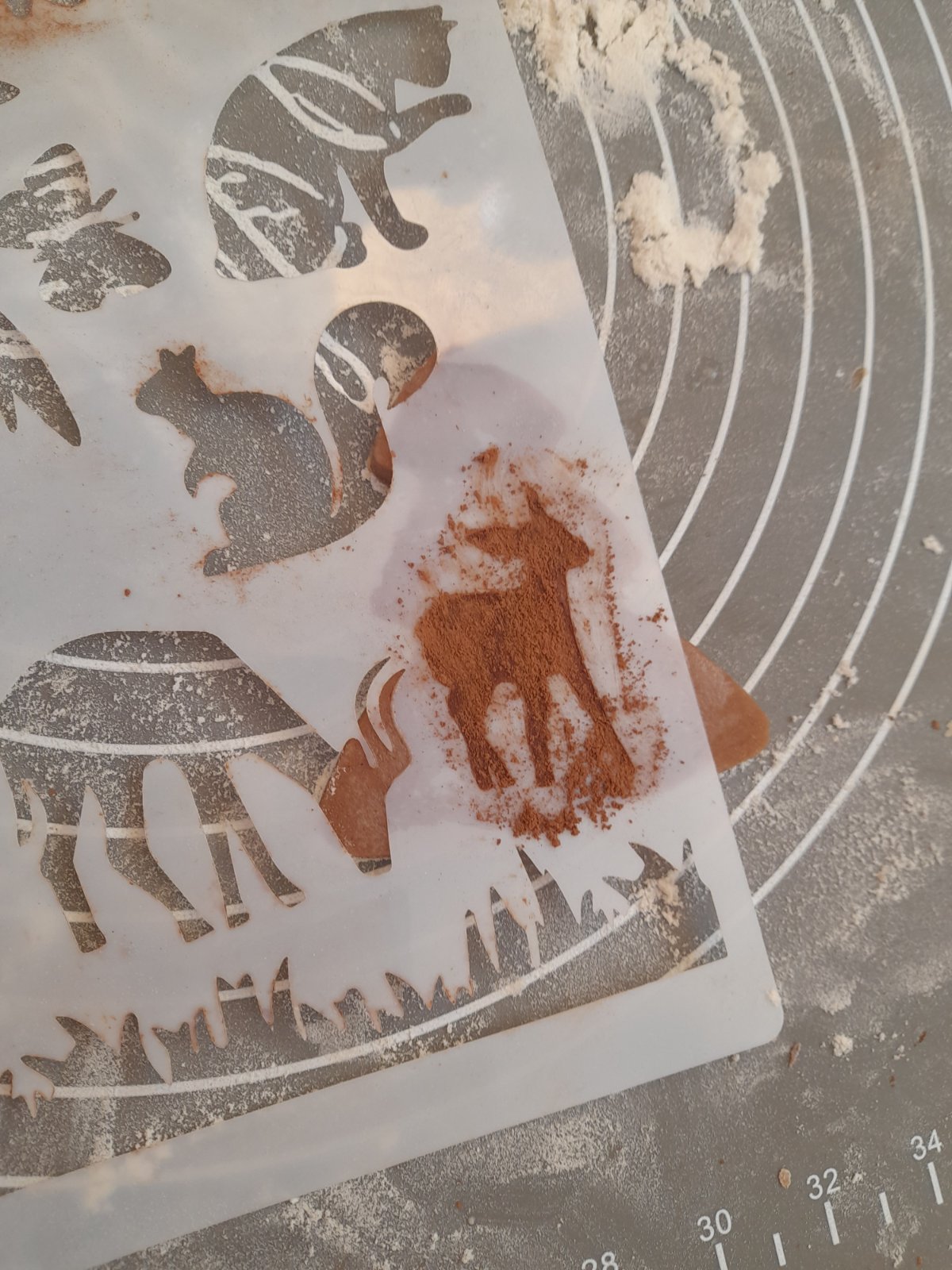 @beata_k z cesta vykrojis medovnik, este surovy potries jemne vodou, prilozis sablonu a stetcom nanesies kakao, das upiect a horuce potries vajickom