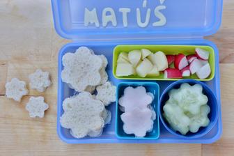 Takto na kúsky mi Matúš zje všetko a každý deň sa teší na prekvapko čo v krabičke bude 🙂 Klasickú obloženú žemľu zje len spolovice, vyskúšala som 2x a neuspela som. A vlastne ani ja nemám rada lepáky, tak som si povedala že to skúsim inak. A z odrezkov sa popri príprave aj naraňajkujem 🙂 Aktuálne desiatuje iba čisto zeleninu alebo čisto ovocie, nie na môj pokyn, to si vymyslel sám... 🙂