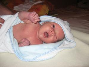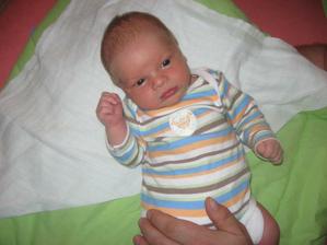 Kedze sa mi velmi na tento svet nechcelo, trosku som mamicku potrapil a nakoniec som sa narodil az sekciou... ale ked ma moja maminka prvykrat uvidela, vsetka bolest bola prec ! 🙂 velmi ma lubi a tatinko tiez, su zo mna nadseni !!! ved som ich vytuzeny syncek... 🙂